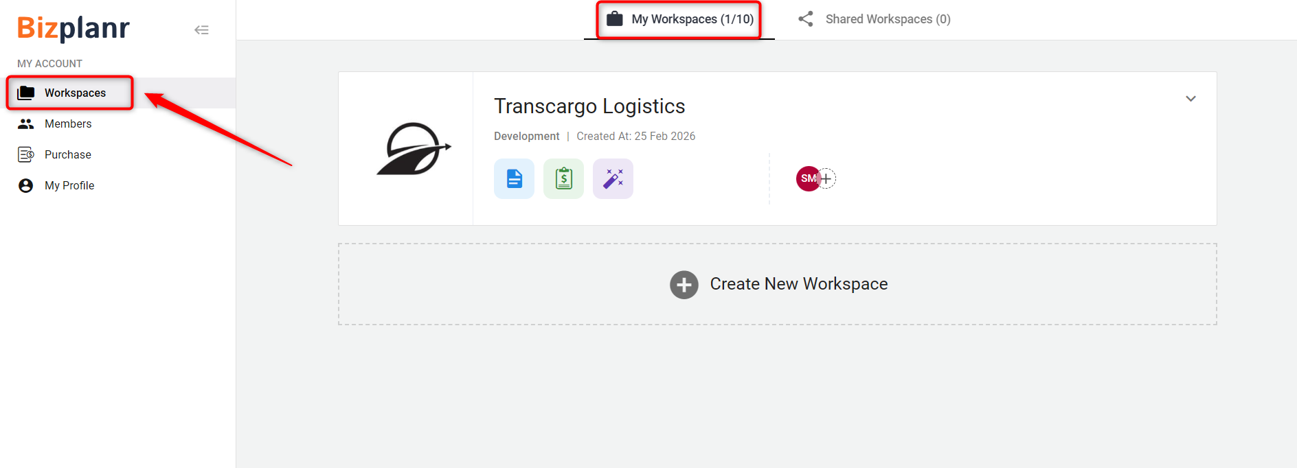 Log in to your account, and in the sidebar, you will have the WORKSPACE option to choose your workspace.
