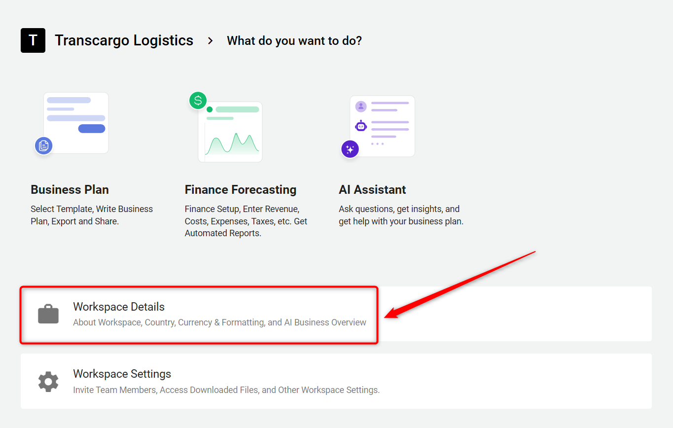Once you've updated the necessary information, you're all set to move forward with your AI-assisted Business Plan creation.