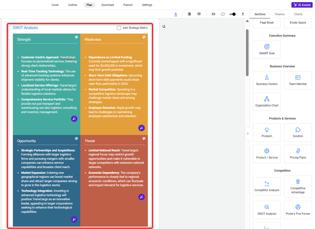 The ability to customize and expand your business plan with various sections provides a significant advantage in business planning. This makes your plan clearer and more useful for your business's future.
