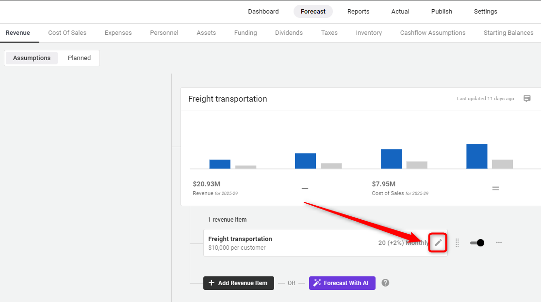 You can do this by adding a percentage to the forecast sheet or updating it directly in the forecast form. This guide will walk you through the process of adding or modifying revenue growth for better financial planning.