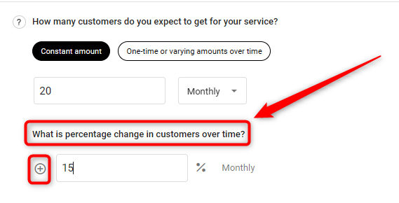 You can also use the (+ / -) toggle to define whether the revenue is increasing or decreasing.