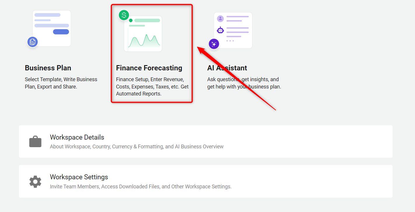 Log in to your account and navigate to the "Finance Forecasting" module.