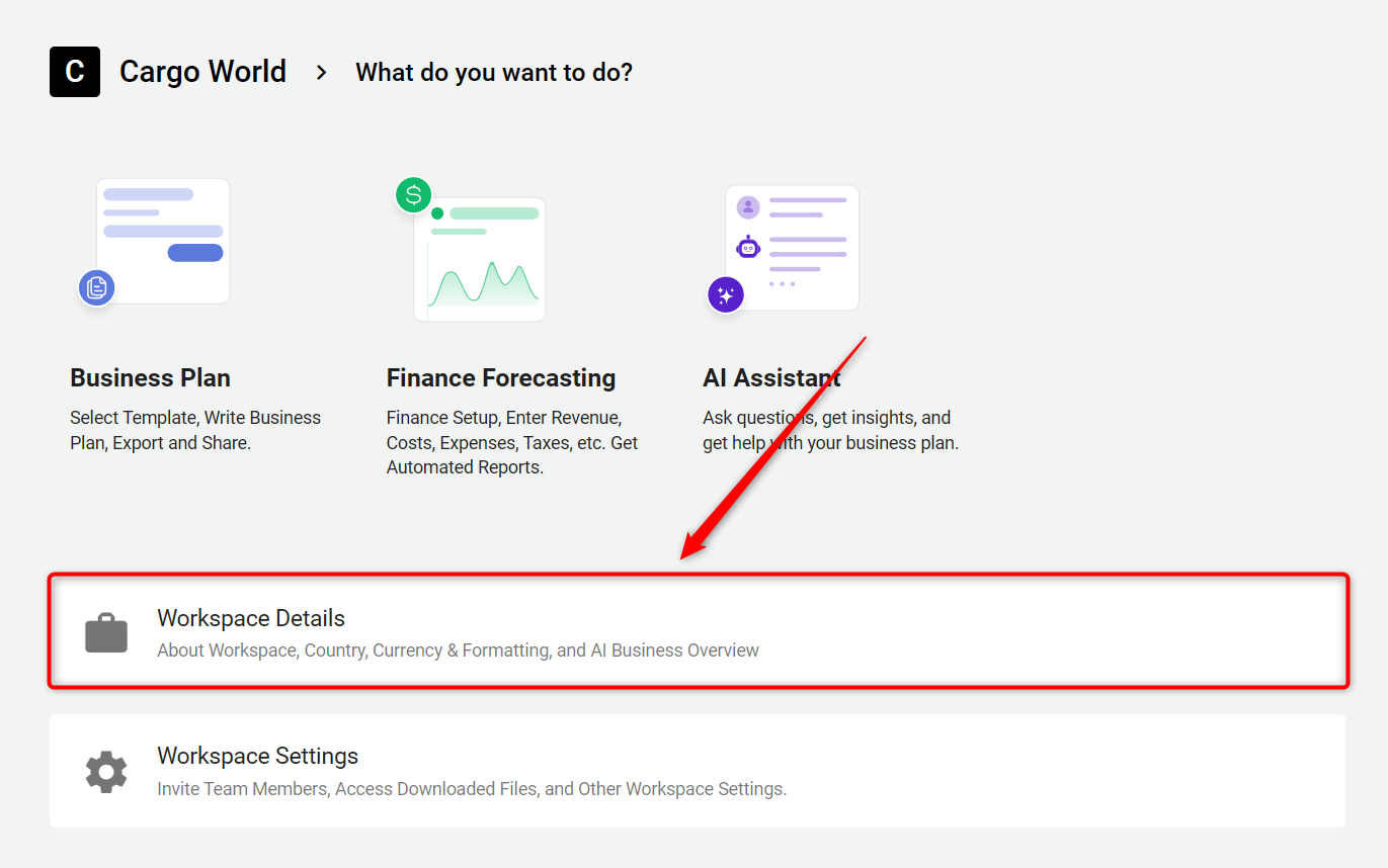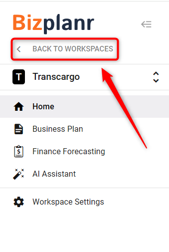 You will now see that your Workspace name has been updated. Each Workspace represents a business or a business plan, so changing the business name updates the workspace name as well.