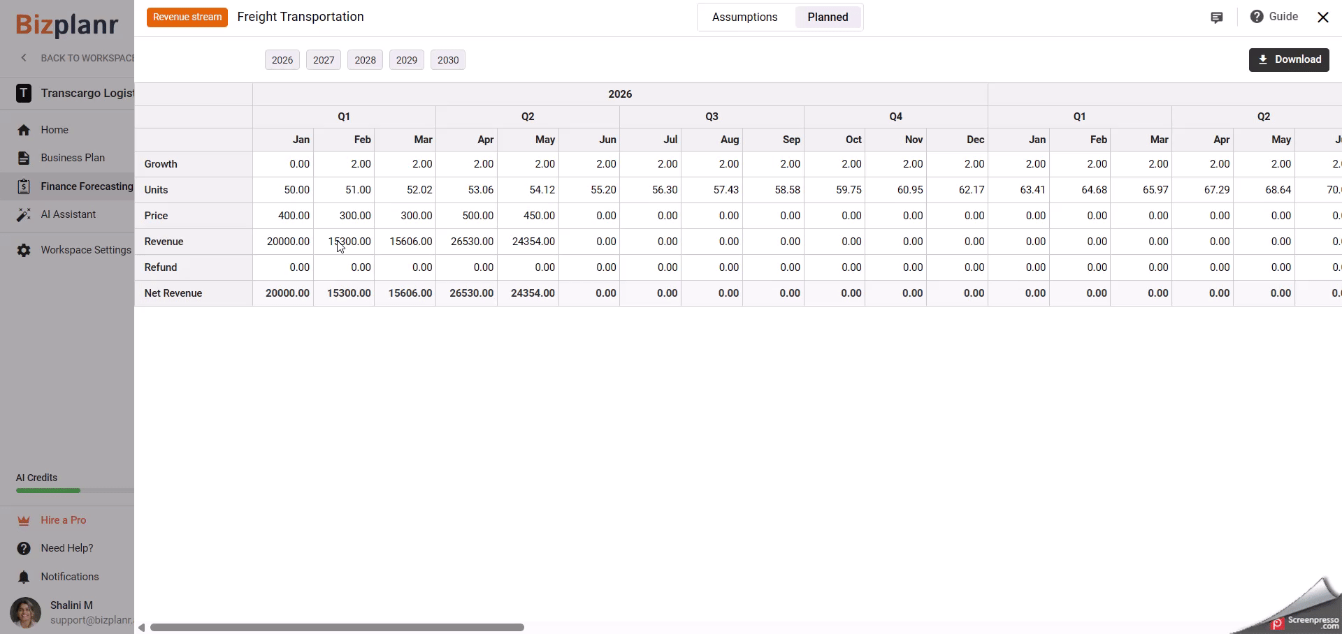 Forecasting varying amounts over time allows you to create more realistic and dynamic financial projections. Whether you're accounting for seasonal trends, changing prices, or team expansion, this method gives you full control over your plan’s accuracy and flexibility.