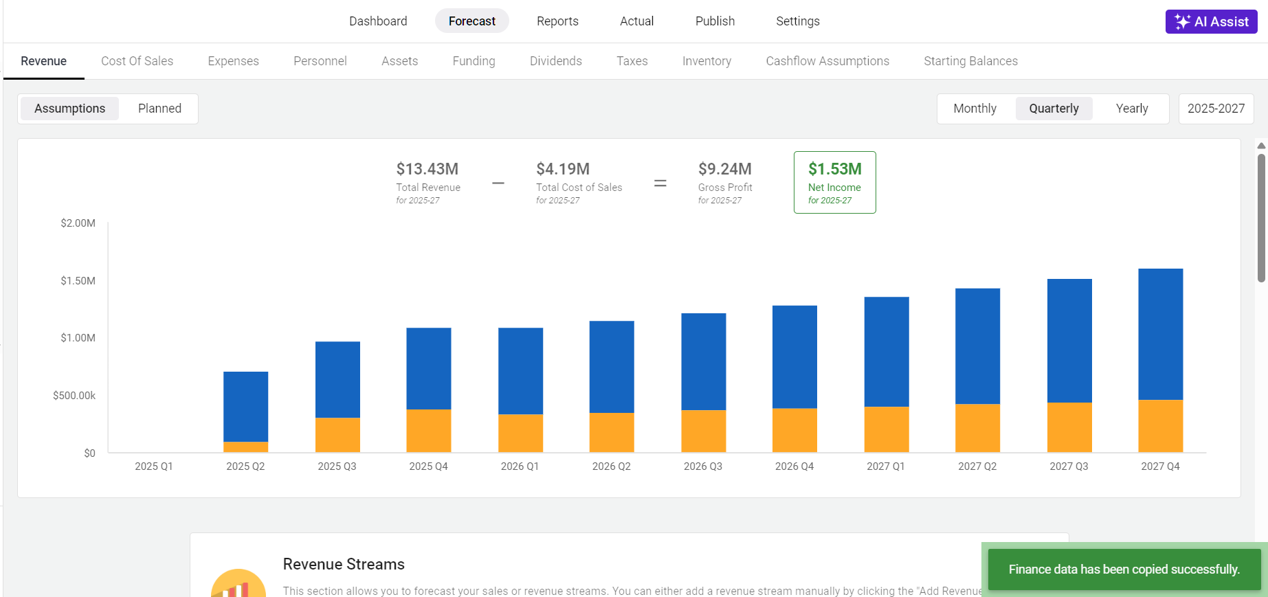 When working across multiple workspaces, it’s not always practical or efficient to recreate your entire financial forecast from the ground up every time. Whether you’re managing different business plans, creating versions for separate clients, or testing out new scenarios, having a way to quickly duplicate your financial data can be a real time-saver.