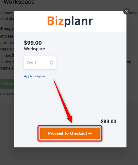 Bizplanr offers a one-time workspace purchase. There is no recurring subscription.